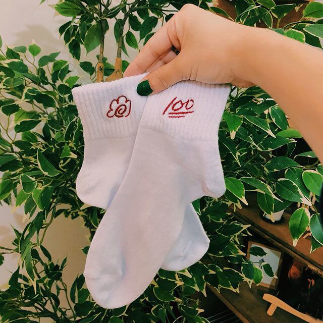 SOLD OUT			キュートな100点と花柄の刺繍が入ったソックス♡