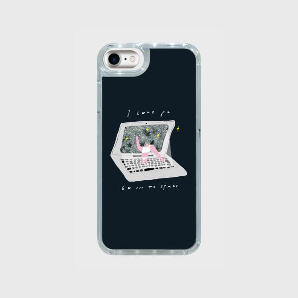 PCに映る星空を眺める女の子のイラストが描かれたスマホケース。