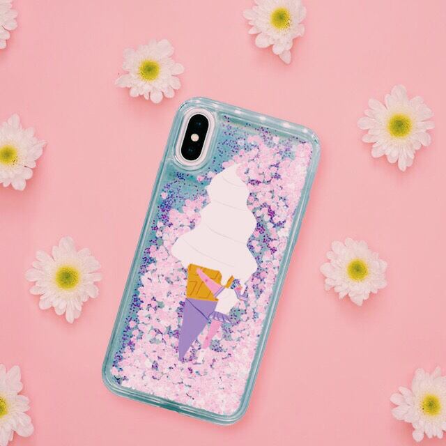 ソフトクリームとセーラー服の女の子のイラストが入ったグリッターケース!