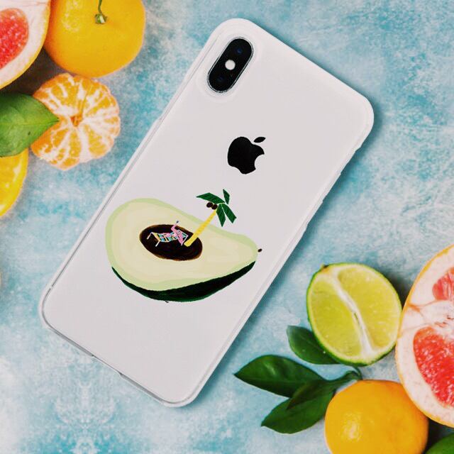 アボガドの島で休みを満喫する女の子が描かれたデザインのクリアケース。